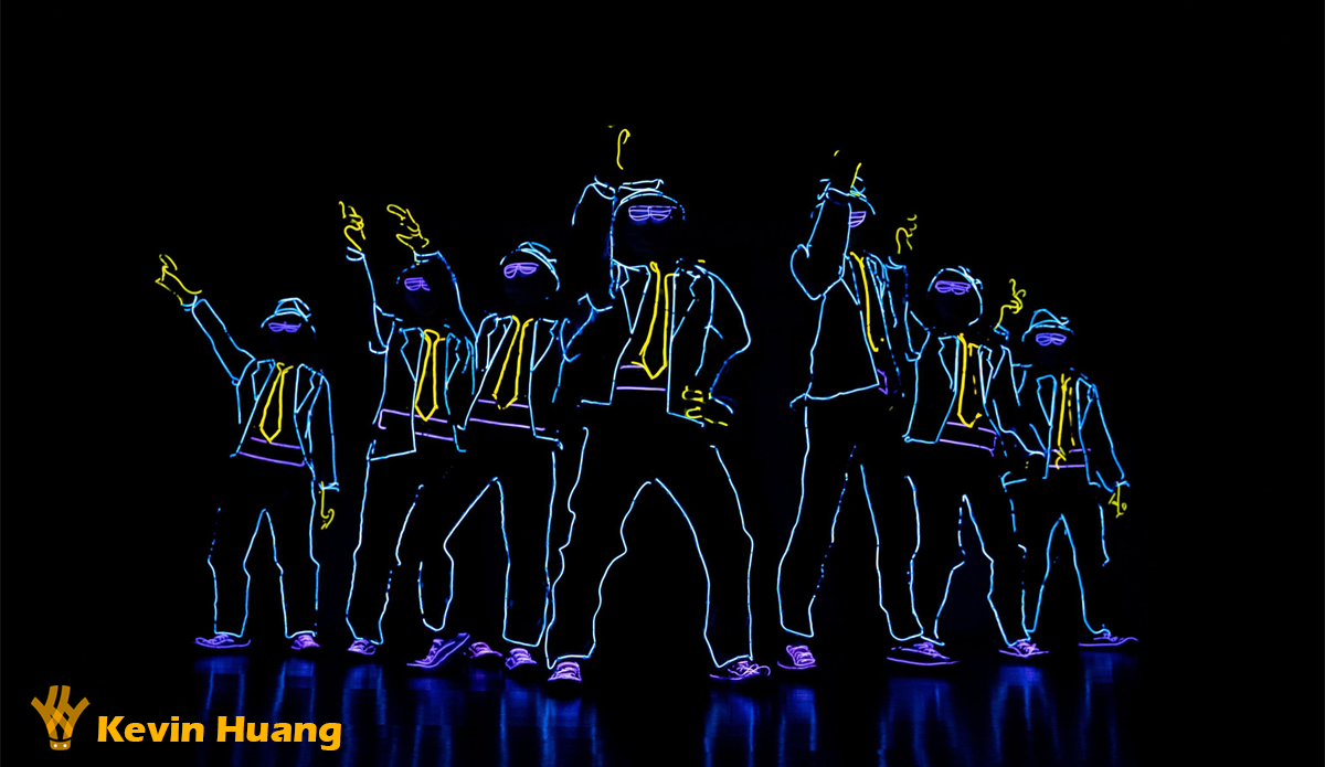 This is a light show combining modern dancing with electrical engineering. ( Suit men versus Ninjas style) By placing LED, optical fiber, and some electronic components on dancers’ costumes, we can control the lights to perform a light show.