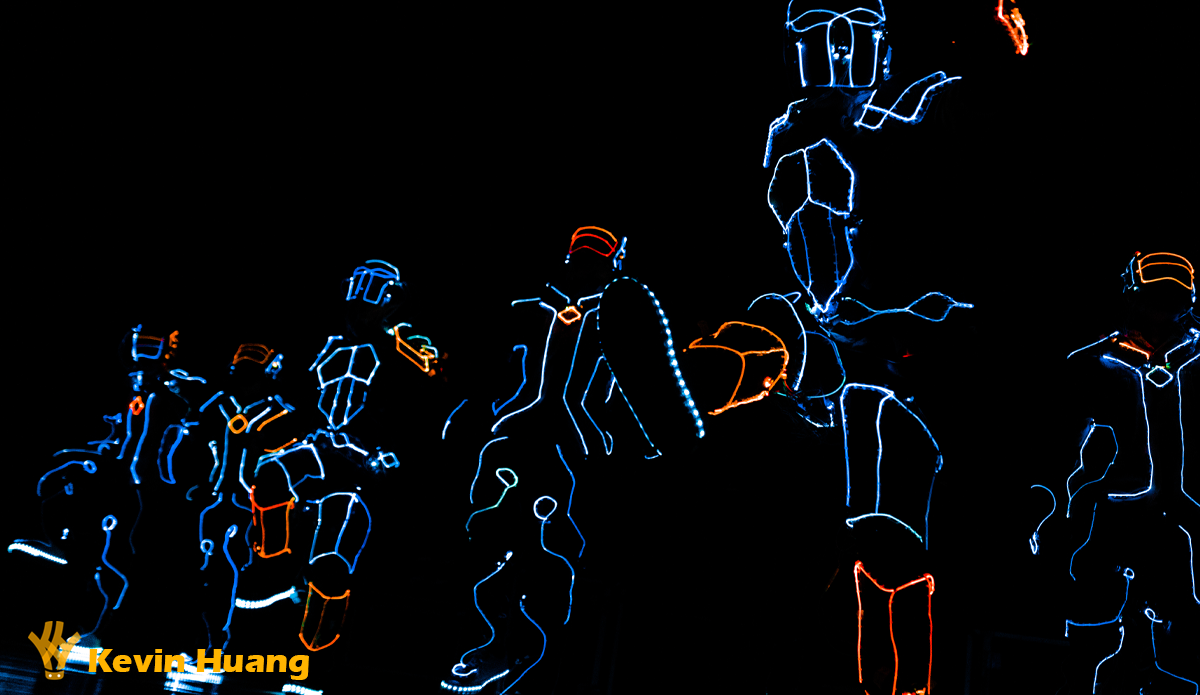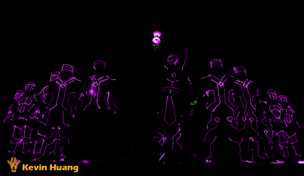 This is a light show combining modern dancing with electrical engineering. ( Sci-fi style ) By placing LED, optical fiber, and some electronic components on dancers’ costumes, we can control the lights to perform a light show.