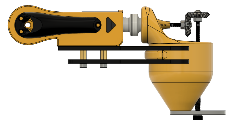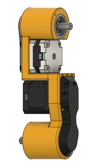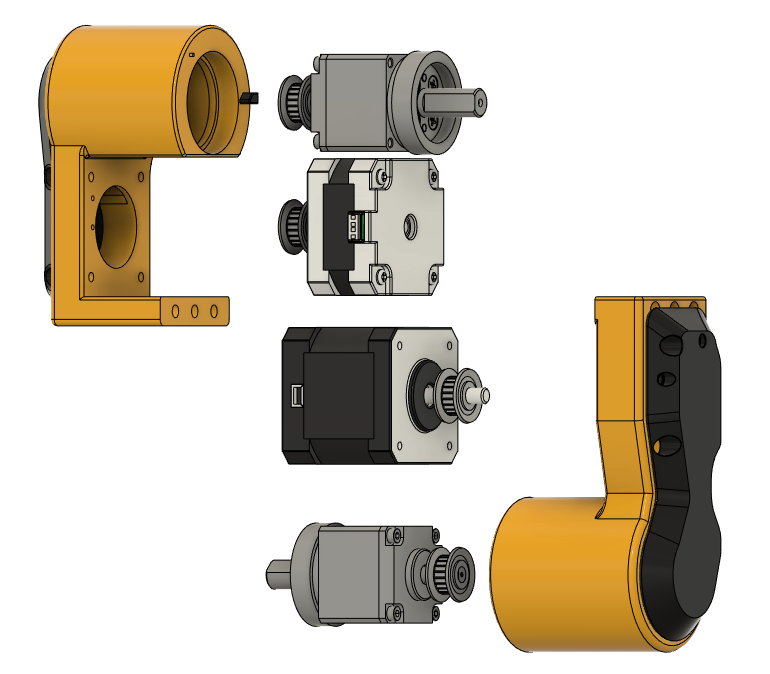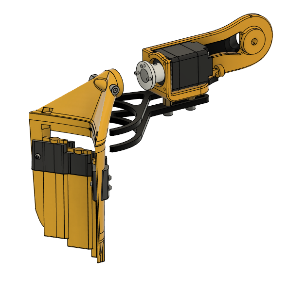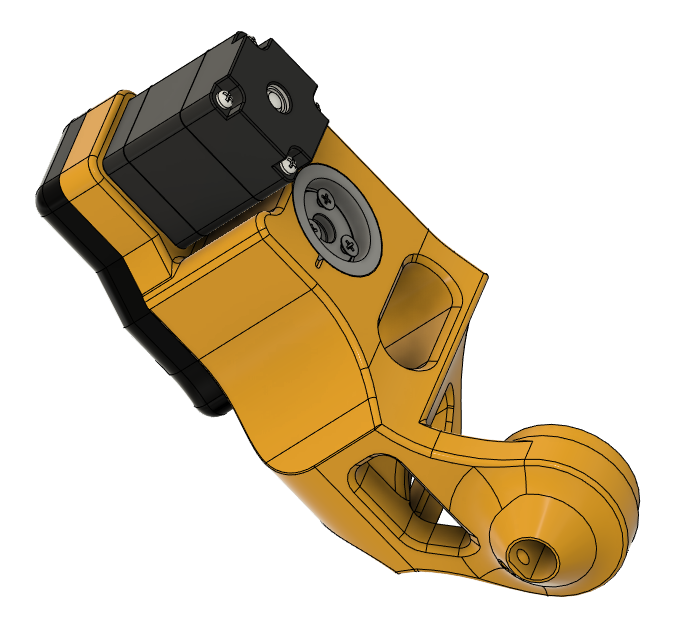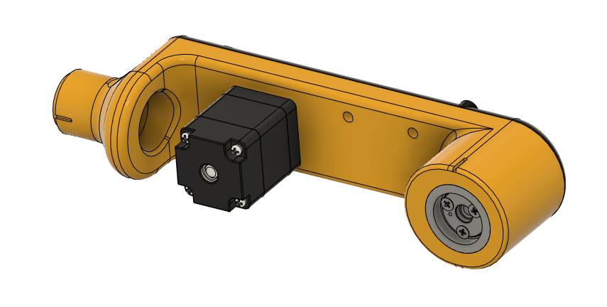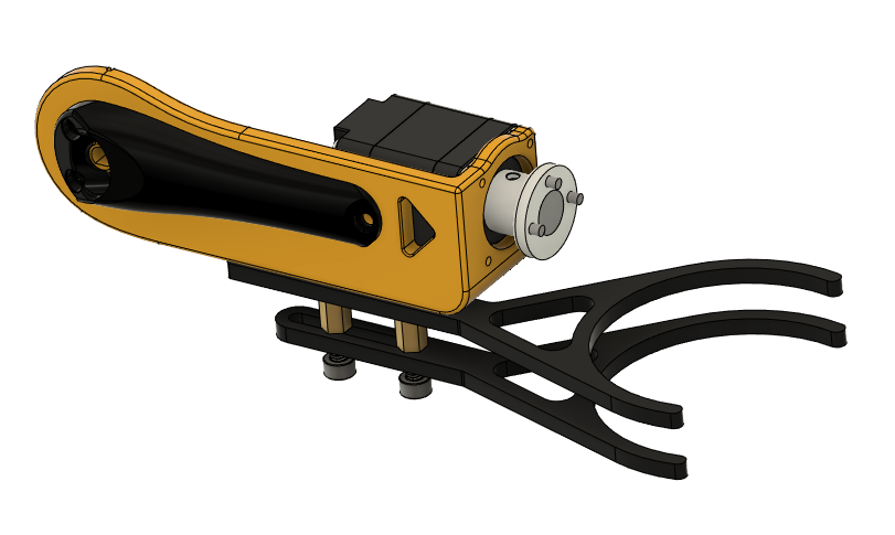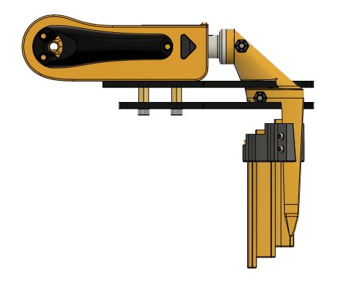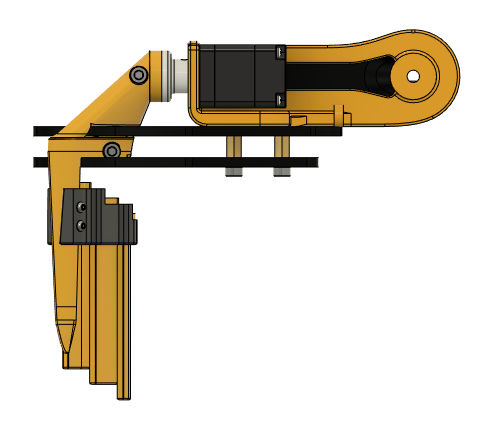 The arm is divided into two parts, the upper and lower sections, for ease of printing and structural strength. Three M3 screws connect the upper and lower parts, providing additional stiffness to the arm. The lower part is connected to the shoulder via a bearing, enabling free rotation of the arm.