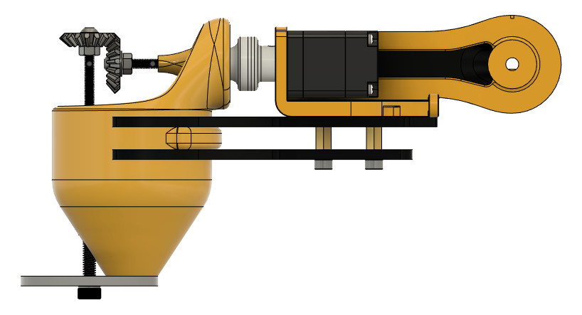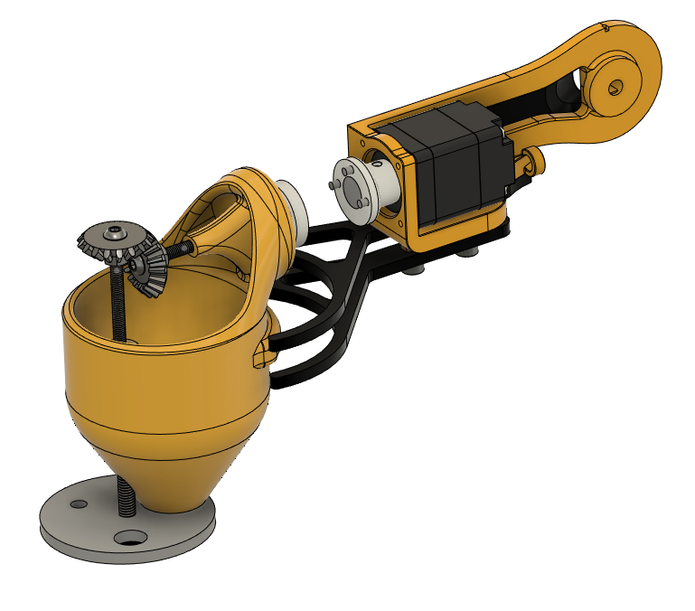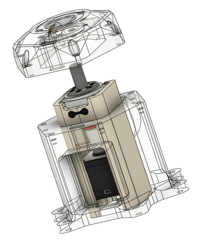 For the base, a Sentel harmonic drive with a 1:50 reduction ratio was incorporated. Additional couplings were added to address any misalignment between the harmonic drive axis and the motor output shaft. The base housing has been divided into upper and lower sections for two primary reasons. First, this separation simplifies part replacement and conserves filament. Second, it permits hand adjustments for the first axis without necessitating the disassembly of the entire robot.